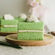 This small-batch Pandan Coconut Cream Cake is a simple light and spongy cake filled with a thin layer of coconut-flavored cream, making it the perfect snacking cake.